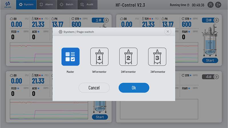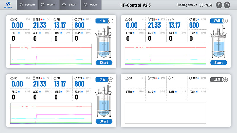多聯(lián)罐的主控界面如下圖所示,所有罐體的主要參數(shù)數(shù)據(jù)都會(huì)在總界面顯示,方便監(jiān)控。