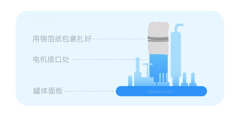 取下生物反應(yīng)器的攪拌電機(jī),平放于桌上,電機(jī)接口處用錫箔紙包好并用皮筋捆扎,防止滅菌過程脫落,以消除高壓蒸汽滅菌時(shí)產(chǎn)生的高溫蒸汽對(duì)電機(jī)接口的破壞。