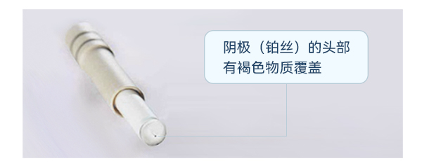 這種情況下,將內(nèi)電極的頭部對(duì)著光源觀察陰極,可以看到陰極表面顯露出黑色。可使用標(biāo)號(hào)1000目以上的砂紙?jiān)阢K絲頭部輕輕打磨數(shù)次,至鉑絲表面發(fā)亮即可。切不可過度打磨,否則會(huì)使內(nèi)電極頭部受損。