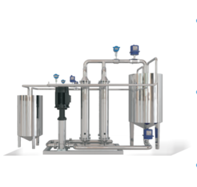 一個或多個模塊被合并到一個過濾系統(tǒng)中。循環(huán)泵提供循環(huán)流量,進料泵提供過濾壓力??刂屏髁炕驂毫?,濾液從模塊中流出。
