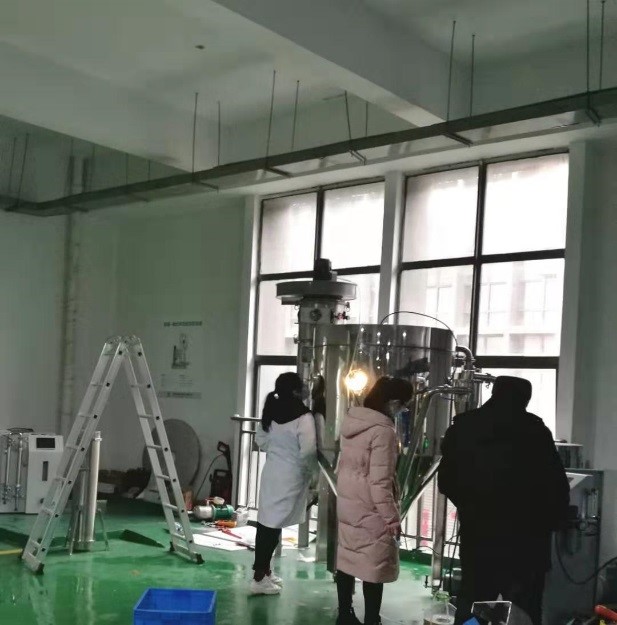 實驗分別采用離心霧化和雙流體霧化分別進行實驗測試,通過實驗結(jié)果表明,我司設(shè)備實驗收料更加明顯,也沒有堵塞現(xiàn)象發(fā)生,收集率達到70%以上,優(yōu)于用戶在其他廠家機器上的實驗結(jié)果,收到良好的評價。 本次實驗由我司技術(shù)人員全程為用戶講解,得到用戶的認可。期間,我司工作人員與用戶還進行了針對這次實驗的討論會,用戶表示進入實際性的生產(chǎn)階段設(shè)備的籌劃和設(shè)計。